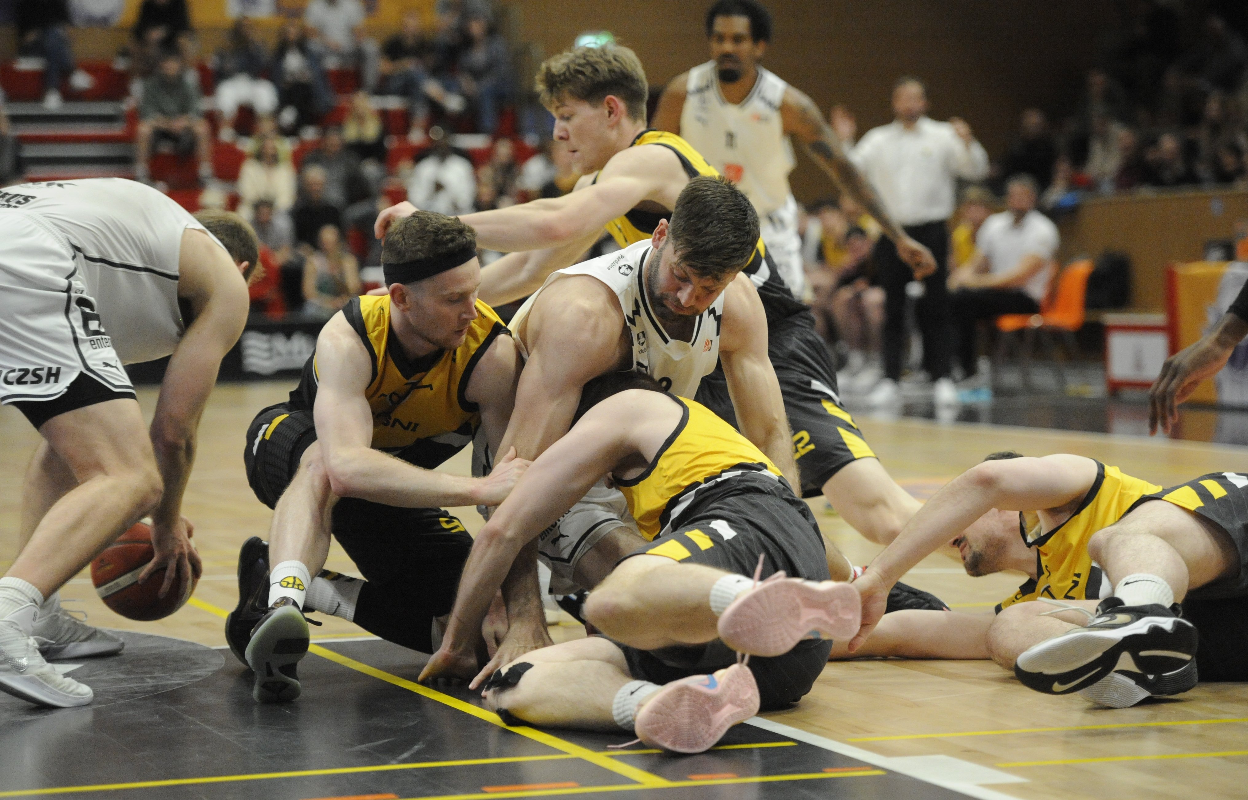 Díky šňůře 17:4 jsme na začátku 13. minuty přesto poprvé odskočili na dvouciferný rozdíl (32:22). Sršni však potvrdili pověst nesmírně odhodlaného týmu a vedeni Janem Karlovským, který měl už v 15. minutě na kontě 13 bodů, do poločasu stáhli manko na šest bodů. Přestože jsme nedlouho po startu druhé půle náš náskok zdvojnásobili (59:47), houževnatí hosté se po šňůře 2:10 znovu dotáhli.